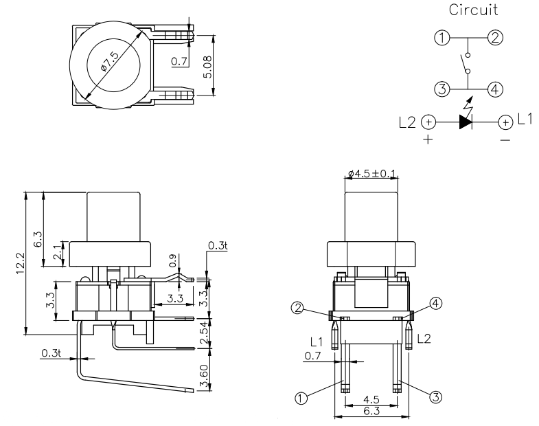 • 帶燈輕觸開關TS3-6AR-1C-3B